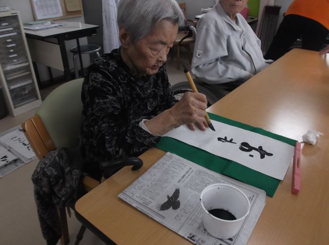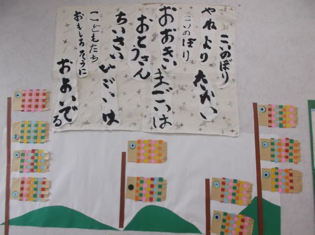 「こいのぼり」の歌詞も書道で書きました。単語で区切って皆さんで書いていただきました。