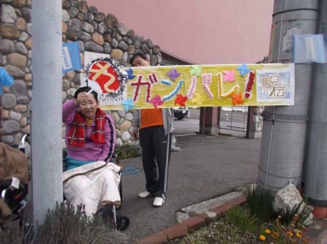 大分市のデイサービスセンター赤とんぼ鶴崎で県内一周駅伝の応援をしました。